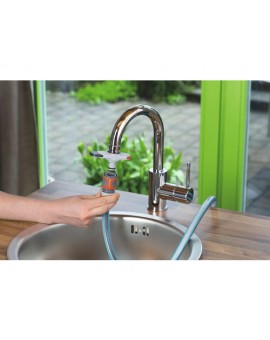 Für die Wiederbefüllung ist im Lieferumfang ein Prof Gardena Hanverbinder dabei. Passt für alle gängigen Armaturen in Küche oder Badezimmer.
