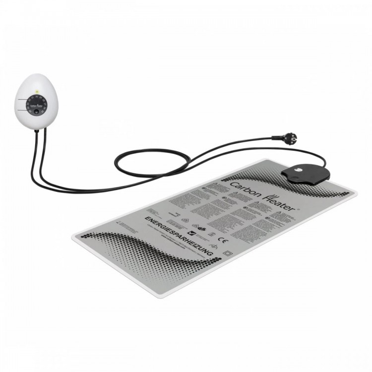 Herausragendes Merkmal der in Deutschland gefertigten Carbon Heater ist ihre optimale Energieeffizienz, die durch das vollflächige Heizelement aus Carbon erzielt wird. Carbon besteht aus gepresstem Kohlestaub und ist sowohl ein sehr guter Wärmeleiter, die zugeführte Energie wird zu 99,9999 % in Wärme umgewandelt, als auch extrem hitzebeständig. Die Bauteile im Thermostat verbrauchen nur einen geringen Anteil an Strom, so dass ausschließlich die Heizmatte erwärmt wird.